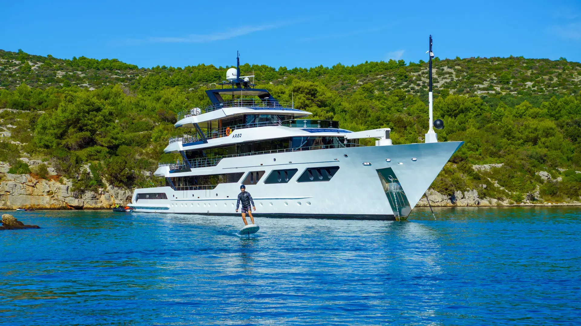 Luxury super yacht Argo represents a 5-star floating resort specially designed for large charter parties. This yacht with 5-decks is custom-built by ICY and accommodates up to 26 guests. Besides numerous amenities and water toys, the 15-member crew service will make your stay on Argo a superb cruising experience.